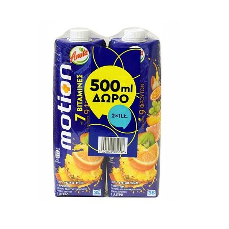 Amita Motion 9 Φρούτα & 7 Βιταμίνες 2X1ml+ 500ml Δώρο